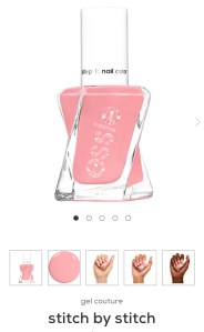 I like coral-red colors for summer like essie Rock the Runway but this summer I’ve gone a bit lighter. I’m stuck on essie Stitch by Stitch. And did I mention I use their gel line? Lasts forever so I don’t have to bend over to reach those toes too often. As I said, I do two coats of color and then finish with their clear gel top coat.