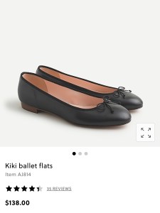 Up first is the splurge pair – J.Crew’s Kiki Ballet Flats. Super classic and works with everything. Although I sometimes think the bow makes them look a little more causal. They’re definitely comfy but my feet do get tired if I’m wearing them on repeat. They fit true to size. The black are $138.