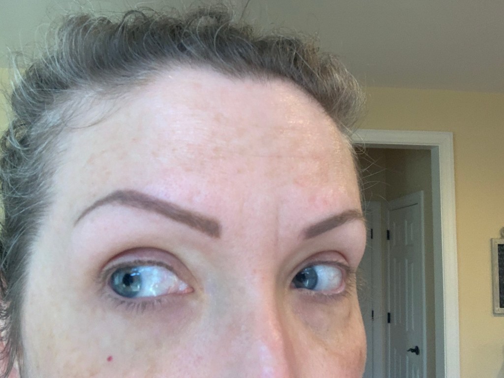 I definitely have oily skin so the lines didn’t stay as crisp and fresh. Which actually was okay with me. I just added a little brow pomade and filled them in all the way. It ended up looking more like powder brows anyway. In discussing what happened, we decided powder brows would be a better option.