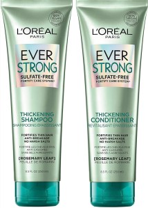 My results are mixed. I used L’Oréal’s Ever Strong Shampoo & Conditioner. My typical routine begins with me soaking my hair and then shampooing. After I rinse it out, I soak my hair again and add the conditioner. I always let it sit for a few minutes while I wash my face. Then I rinse leaving a little behind to help with frizz. Then I apply my products.