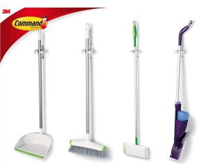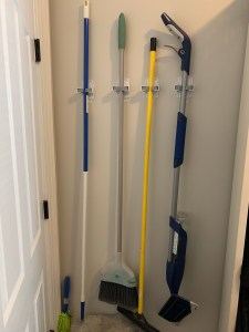 You gotta get the Command Broom & Mop Grippers!! You stick them on the wall, insert the brooms, and you are completely organized. I’m no longer pissed or frustrated when I have to grab the broom or mop from behind the door.