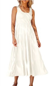 This ANRABESS Women’s Summer Sleevelesss Smocked Sundress is perfect for the look! You can wear it with the sweater above or throw the button down over top. Add your sandals & you’re ready to go!