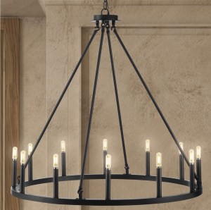 I went straight to Shades of Light. They are my go to site for any type of ceiling or outdoor light fixtures. I found just what I wanted. A plain, black farmhouse chandelier. I got the Minimalist 8 Light Ring Chandelier.
