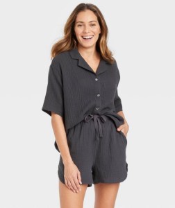I grabbed these from Target. The Stars Above Notch Collar Pajama Shirt and Shorts are perfect to take with me. They are too heavy but they provide good coverage so I don’t feel like everything is on display. I love that the shorts have pockets too! They fit true to size and wash really well. I love that they don’t wrinkle!! I have them in a size large.