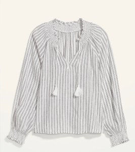 The Puff Sleeve Linen Blend Smocked Blouse will go perfectly with my white jeans or white linen pants. Getting this in a large as well. $36.99 with additional 35% off.
