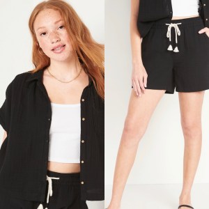 While these pieces are matching, I doubt I’ll wear them together. The shorts are everything I wanted them to be. Long enough that everything is covered & light breezy material. They’re great!! The shirt I’m keeping even though it’s a little cropped. I liked the material and love that it has a collar. I got both pieces in a large.