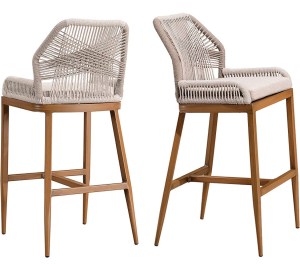 I found these stools on Amazon. The Purple Leaf Outdoor Classic Twill chairs come in at $510 for the pair. Same woven design as the other pair. Their a little lighter in color and the legs are a bit darker, but otherwise pretty darn close. And since they’re half price for two, that makes them twice as nice!!