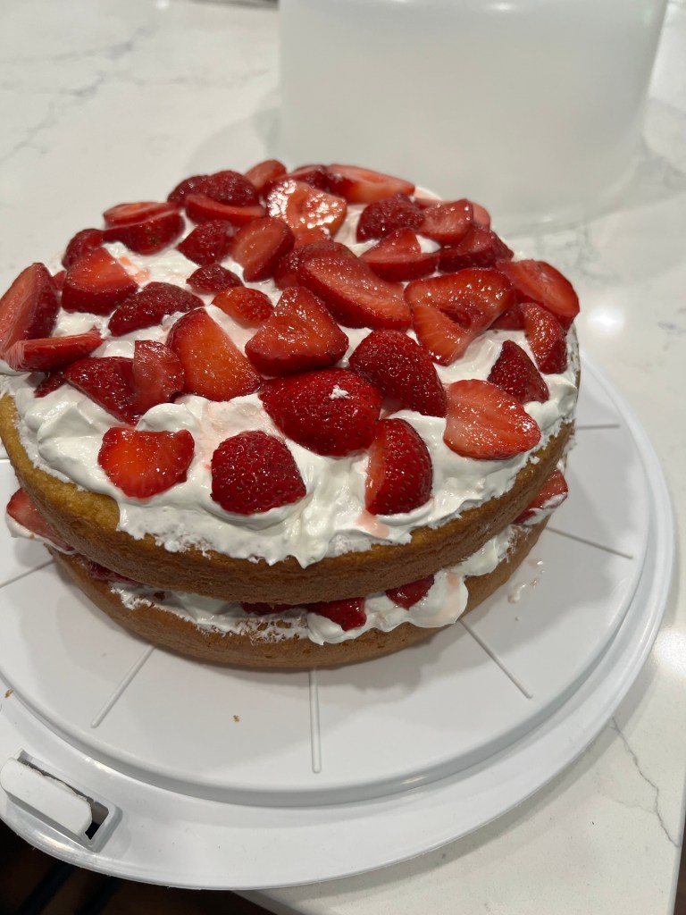 Defrost the Cool Whip while the cakes cook and cool. Put down your first layer of cake and drizzle half of the marinade over the base cake. Top with half of the Cool Whip and half of the strawberries. Top with the second cake layer & drizzle that with the remaining marinade. Finish off with the remaining Cool Whip and strawberries. Keep in the refrigerator until youโre ready to serve. ๐ฐ๐ฐ